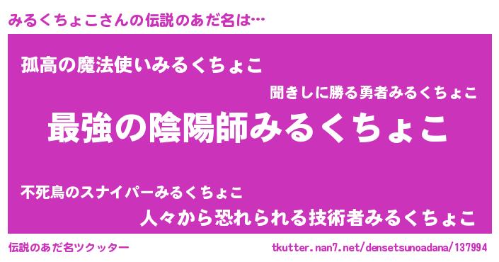 | ファンタジー風あだ名 | 『エターナルミルクチョコー』 |