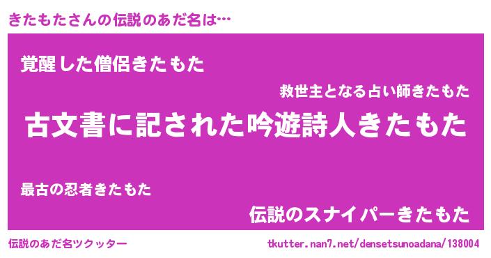 | 意味不明あだ名 | 『永久保存きたもた』『自称きたもた』 |