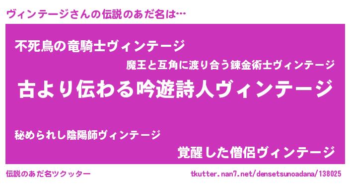 | ヘコむあだ名 | 『ヴィンテージ(笑)』『ヴィにー』 |