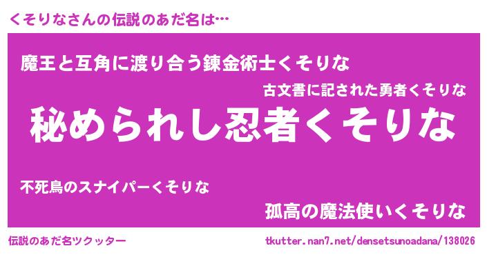 | ファンタジー風あだ名 | 『エターナルクソリナー』『クインクット』 |