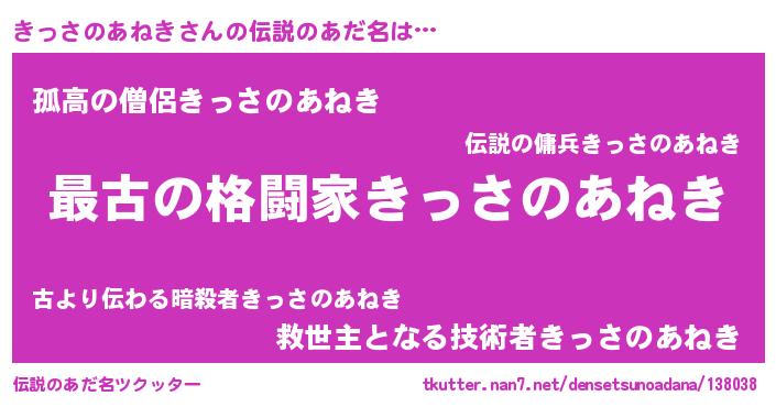 | ファンタジー風あだ名 | 『エターナルキッサノアネキー』 |