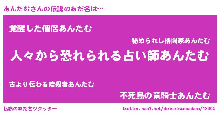| 意味不明あだ名 | 『眠気覚ましガムあんたむ味』 |