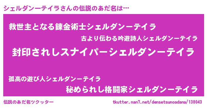 | 意味不明あだ名 | 『住所不定無職シェルダンーテイラ(71歳)』 |