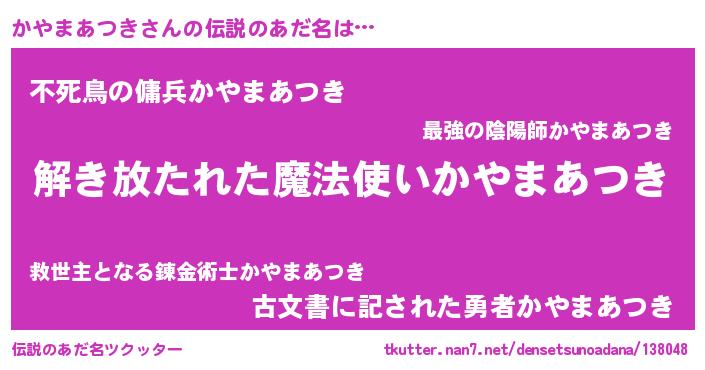 | ヒーロー風カッコイイあだ名 | 『サイバー戦士カヤマアツキ』 |