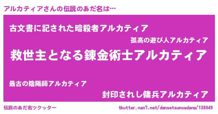 | ヒーロー風カッコイイあだ名 | 『仮面アルダー』『ネオアルカティア』 |
