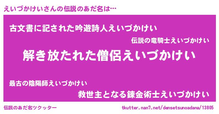 | 意味不明あだ名 | 『とにかく怪しいえいづかけい』 |