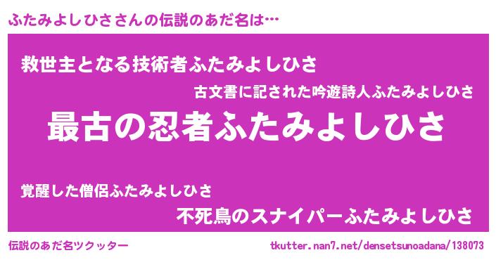 | 意味不明あだ名 | 『ふたみよしひさフォーエバー』 |
