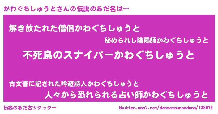 | 意味不明あだ名 | 『自称かわぐちしゅうと』 |