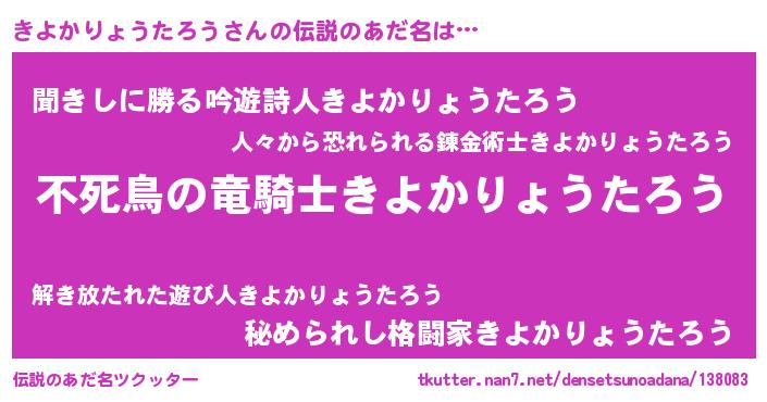 | 男性向けラノベタイトル風あだ名 | 『転生したらきよかりょうたろうだった件』 |