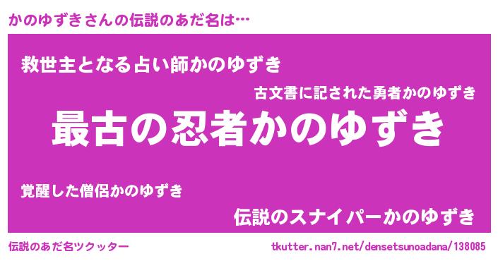 | ファンタジー風あだ名 | 『エターナルカノユズキー』『ゼカノトゥ』 |