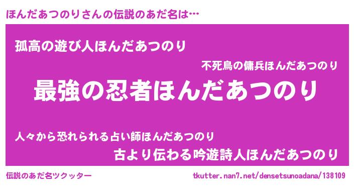 | 意味不明あだ名 | 『ほんだあつのりフォーエバー』 |