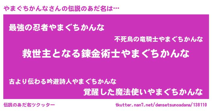 | 男性向けラノベタイトル風あだ名 | 『ノーゲーム・ノーヤマグチカンナ』 |