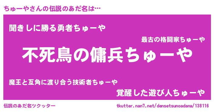| ヘコむあだ名 | 『ちゅふぇ~』『ちゅーや(遠い目)』 |