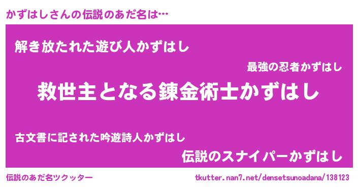 | ヒーロー風カッコイイあだ名 | 『天空の使者かずはし』『銀牙騎士カズ』 |