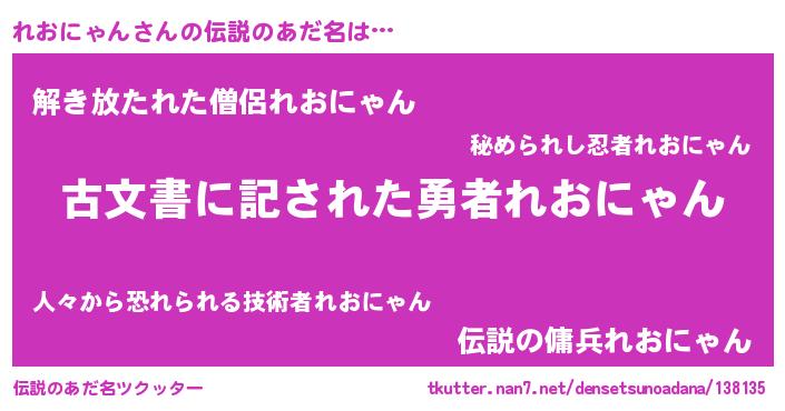 | ヒーロー風カッコイイあだ名 | 『ネオレオニャン』『仮面レオダー』 |