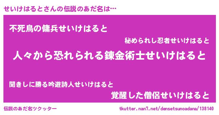 | ヒーロー風カッコイイあだ名 | 『正義の使者せいけはると』 |
