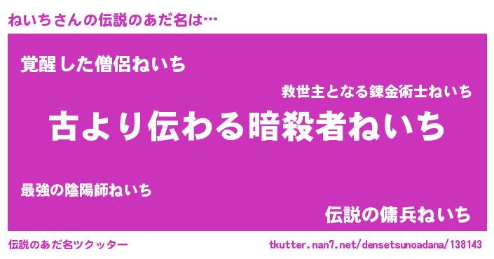 | ヘコむあだ名 | 『ねいち(爆)』『ねいっ子』 |