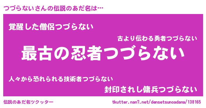 | ファンタジー風あだ名 | 『エターナルツヅラナイー』『ゼツヅトゥ』 |