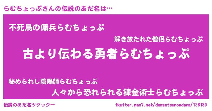 | 意味不明あだ名 | 『住所不定無職らむちょっぷ(81歳)』 |