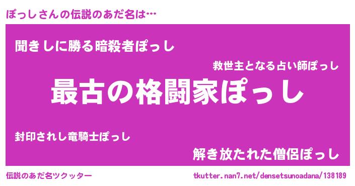 | 意味不明あだ名 | 『自称ぽっし』『住所不定無職ぽっし(40歳)』 |