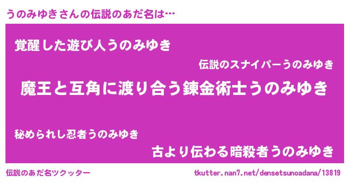 | ヒーロー風カッコイイあだ名 | 『愛の使者うのみゆき』『天弓騎士ウノ』 |