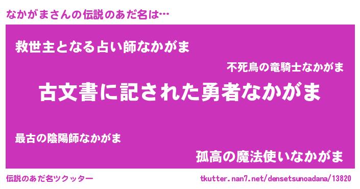 | ヘコむあだ名 | 『なかがま(苦笑)』『なかを』『豆乳』 |