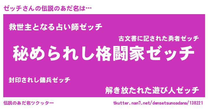 | ヒーロー風カッコイイあだ名 | 『仮面ゼッダー』『ウルトラゼッチマン』 |