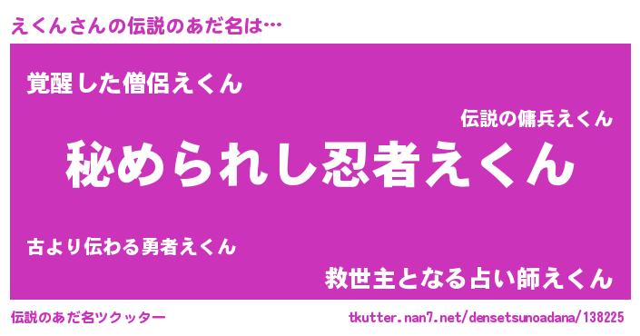 | 男性向けラノベタイトル風あだ名 | 『エクンスレイヤー』『魔弾の王とえくん』 |