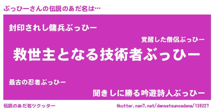 | ヒーロー風カッコイイあだ名 | 『慈愛の使者ぶっひー』『ネオブッヒー』 |