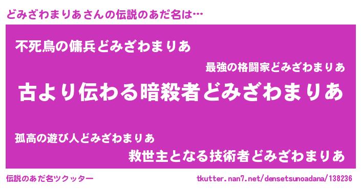 | 男性向けラノベタイトル風あだ名 | 『どみざわまりあという概念が存在しない退屈な世界 』 |