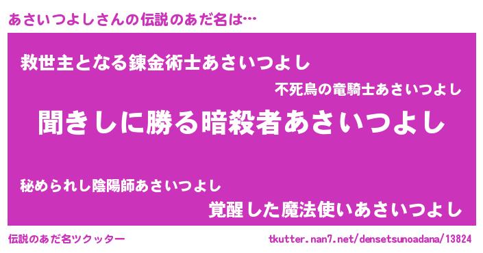 | 意味不明あだ名 | 『永久保存あさいつよし』 |