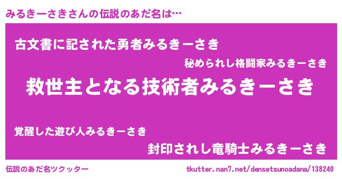 | ヘコむあだ名 | 『みるきーさき(小並感)』『みるにー』 |