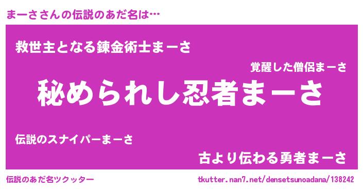 | 女子向けラノベタイトル風あだ名 | 『まーさなんてお断りですっ。』 |