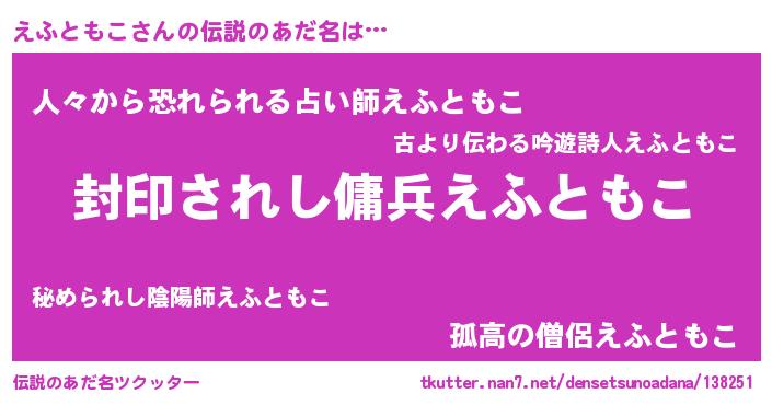 | 胡散臭い通販商品みたいなあだ名 | 『億万長者になれる水晶球…その名も「えふともこ」』 |