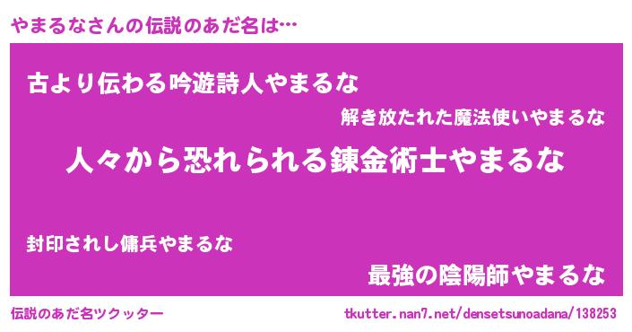 | ヒーロー風カッコイイあだ名 | 『正義の使者やまるな』『ネオヤマルナ』 |