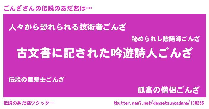 | ヒーロー風カッコイイあだ名 | 『ネオゴンザ』『友情の使者ごんざ』 |