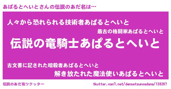 | 意味不明あだ名 | 『ペロリンあぱるとへいと』 |