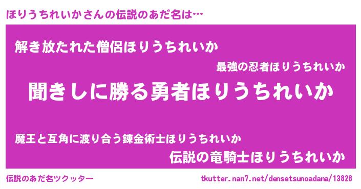 | ヘコむあだ名 | 『ほりうちれいか(遠い目)』『ほり太郎』 |