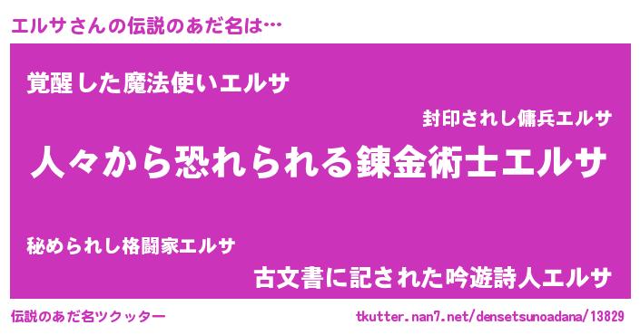 | ヒーロー風カッコイイあだ名 | 『正義の使者エルサ』『炎刃騎士エル』 |