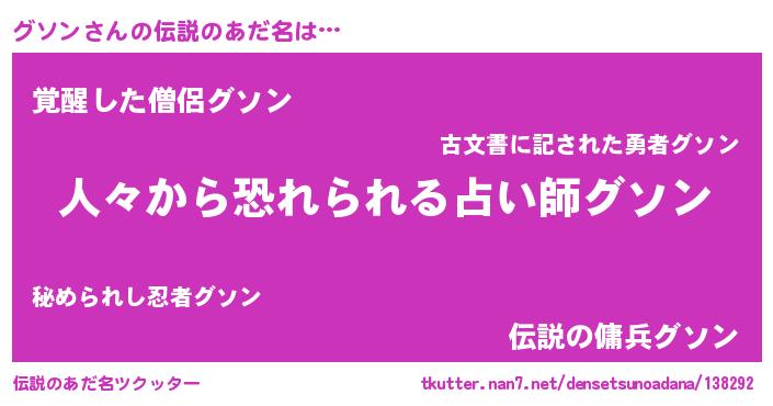 | 意味不明あだ名 | 『眠気覚ましガムグソン味』『自称グソン』 |