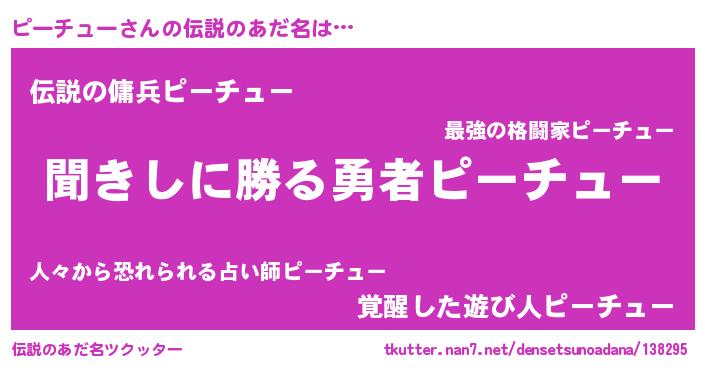 | ヒーロー風カッコイイあだ名 | 『ネオピーチュー』『スーパーピーチュー』 |