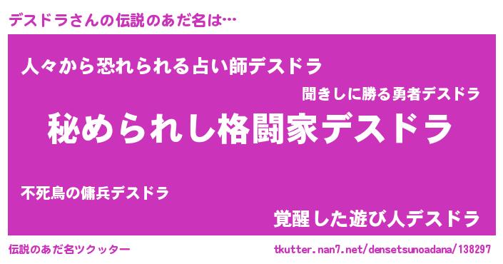 | 意味不明あだ名 | 『住所不定無職デスドラ(5歳)』 |