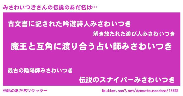 | ヒーロー風カッコイイあだ名 | 『愛の使者みさわいつき』『仮面ミサダー』 |