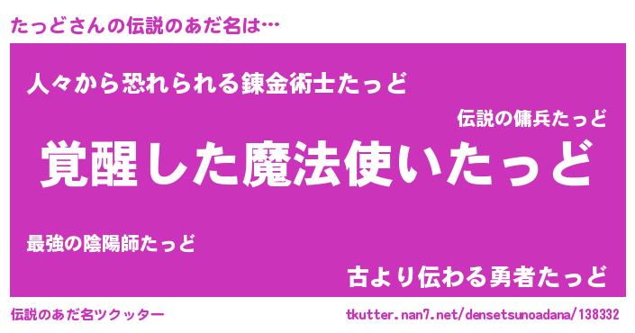 | 意味不明あだ名 | 『住所不定無職たっど(3歳)』『自称たっど』 |