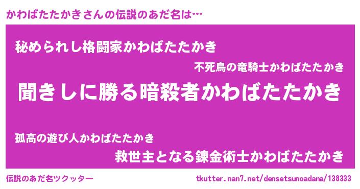 | 意味不明あだ名 | 『永久保存かわばたたかき』 |