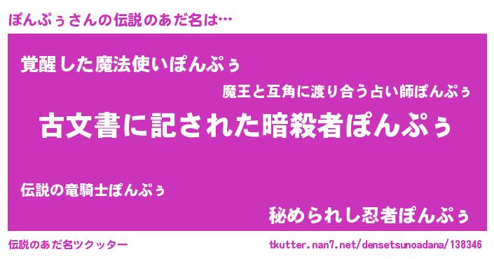 | ヒーロー風カッコイイあだ名 | 『ネオポンプゥ』『暗黒騎士ポン』 |