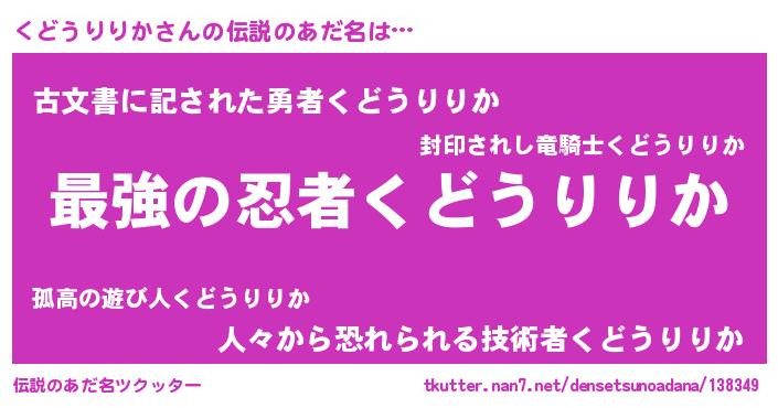 | ヒーロー風カッコイイあだ名 | 『ウルトラくどうりりかマン』 |