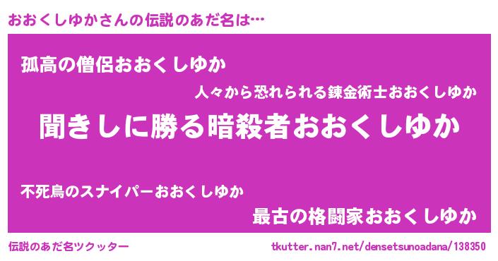 | ヒーロー風カッコイイあだ名 | 『ネオオオクシユカ』『黄金騎士オオ』 |