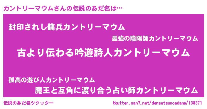 | 女子向けラノベタイトル風あだ名 | 『カントリーマウムアンティーク』 |