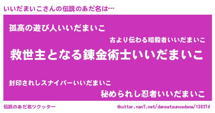 | 男性向けラノベタイトル風あだ名 | 『いいだまいこに滅ぼされるだけの簡単なお仕事です』 |
